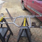Until very recently I had been rebuilding last year’s kart. I had taken it apart and stripped and inspected the frame for cracks or other problems. Not seeing any problems we took it to a powder coater for a nice clean black finish. In the meantime, I turned the motors – a Briggs Animal and a Briggs LO206 – over to Regan at 4 Cycle Central for upgrades and tune ups. Once the chassis was back I started to put all the pieces back on trying to remember the fine details of installation and setup.