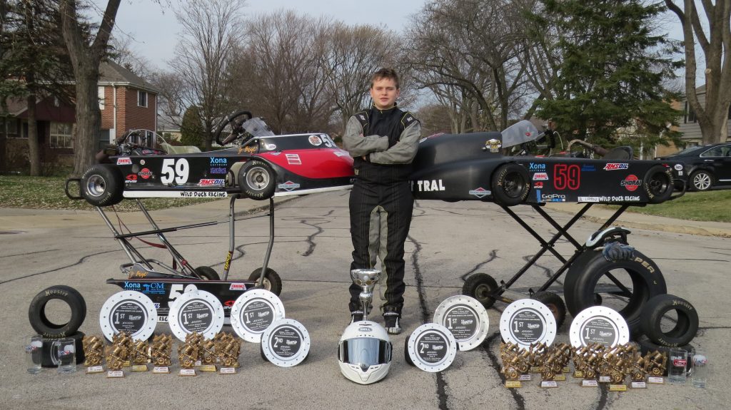 at Michigan International Speedway followed by a second at Blackhawk Farms. Thankfully, neither incident caused any lasting injury or caused much damage to either kart, but not a good start. The first real test of the season was DKC’s Mid-Ohio, against unknown drivers and karts, where he swept the weekend. Races at Grattan and Michigan International Speedway brought mixed bag of results but overall success as the sprint kart was unchallenged and we warmed up to the road kart. The season culminated by enjoying the first kart race ever at Pittsburgh International Race Complex, where, Jason had one of his most exciting races(video) of the season.