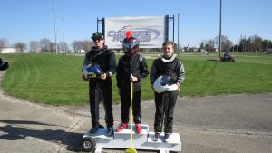 Overnight the kart was reset for medium compound tires. Tires compounds come in different levels of softness. Very soft tires are very sticky but wear out quickly but allow for faster laps, hard tires last for ever by slide easily requiring slower speeds. The traveling 4 cycle series use a medium compound, a compromise for wear between speed. Each tire compound requires the chassis to be set up differently to maximize lap times. Soft tires the kart is tuned to have less grip to keep the kart smooth. When using harder tires the kart needs as much grip as possible. A suite of changes required from wheel spacing, caster adjustments, tire pressure, and other tunables. As the day progressed we made slight adjustments to searching a setup that freed the kart up for smooth driving and low lap times. In the end we did pick up a second due to tuning and some better driving as well. We where testing using older tires from last year, new tires will be a little faster but will require further tuning.
