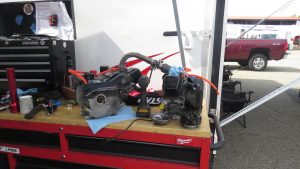 The Dart Kart Club requires junior animal drivers to run with the black plate on the carburetor. The keeps them from ‘going too fast’. Early in Friday’s practice, Jason reported that the karts were both burping at the end of straights. At first we thought the motors where having issues but after talking things over with a number of people, we figured out that the plate was causing the carburetor to overload the motor with fuel. Now that we knew what the problem was, we did not have time to figure out the proper setup and had to take a few guesses. Some of them seem to work a bit better but still not quite right. Eventually, we asked a former junior driver for his suggestions and he gave us his carburetor parts. I put them in and the burping was gone and the kart was faster. This may have been the same issue we were battling last year.