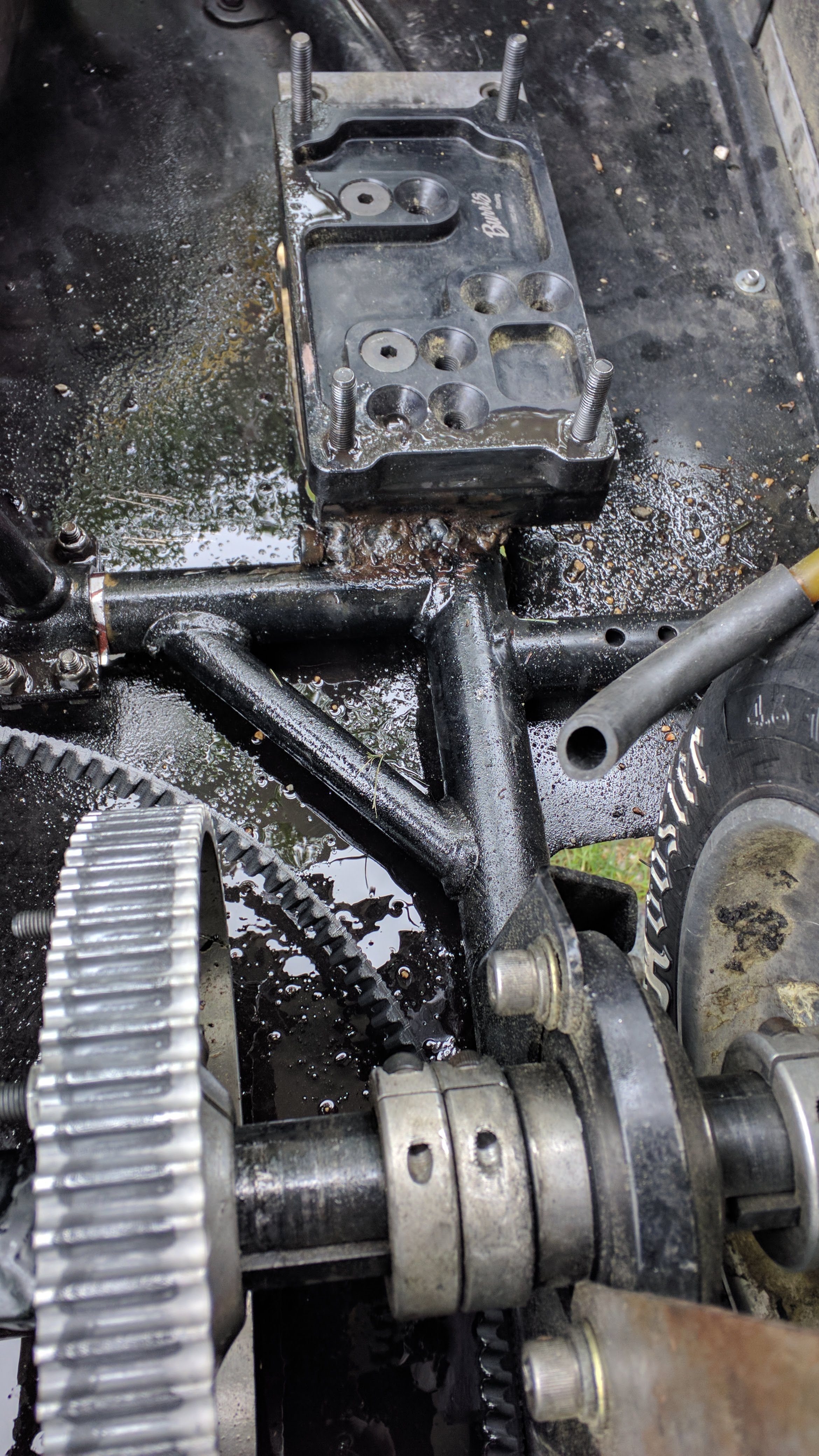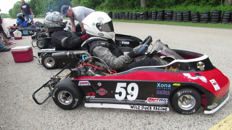 Saturday’s practice in the road kart started off pretty well. We were starting to get it dialed in when a side cover gasket let go on the motor. Thankfully, the worst that happened was some oil was sprayed around the kart, to 4 Cycle Central it goes for minor repairs. I grabbed the spare engine and had it back together just in time for the next round of practice. The spare motor has a bit more horse power and I was saving it for Mid-Ohio. With one round of practice left before racing we were still tinkering to get the handling right. It was a bear to drive and Jason had to keep it finessing the wheel to keep it on track and was losing about a second to the much of the field.