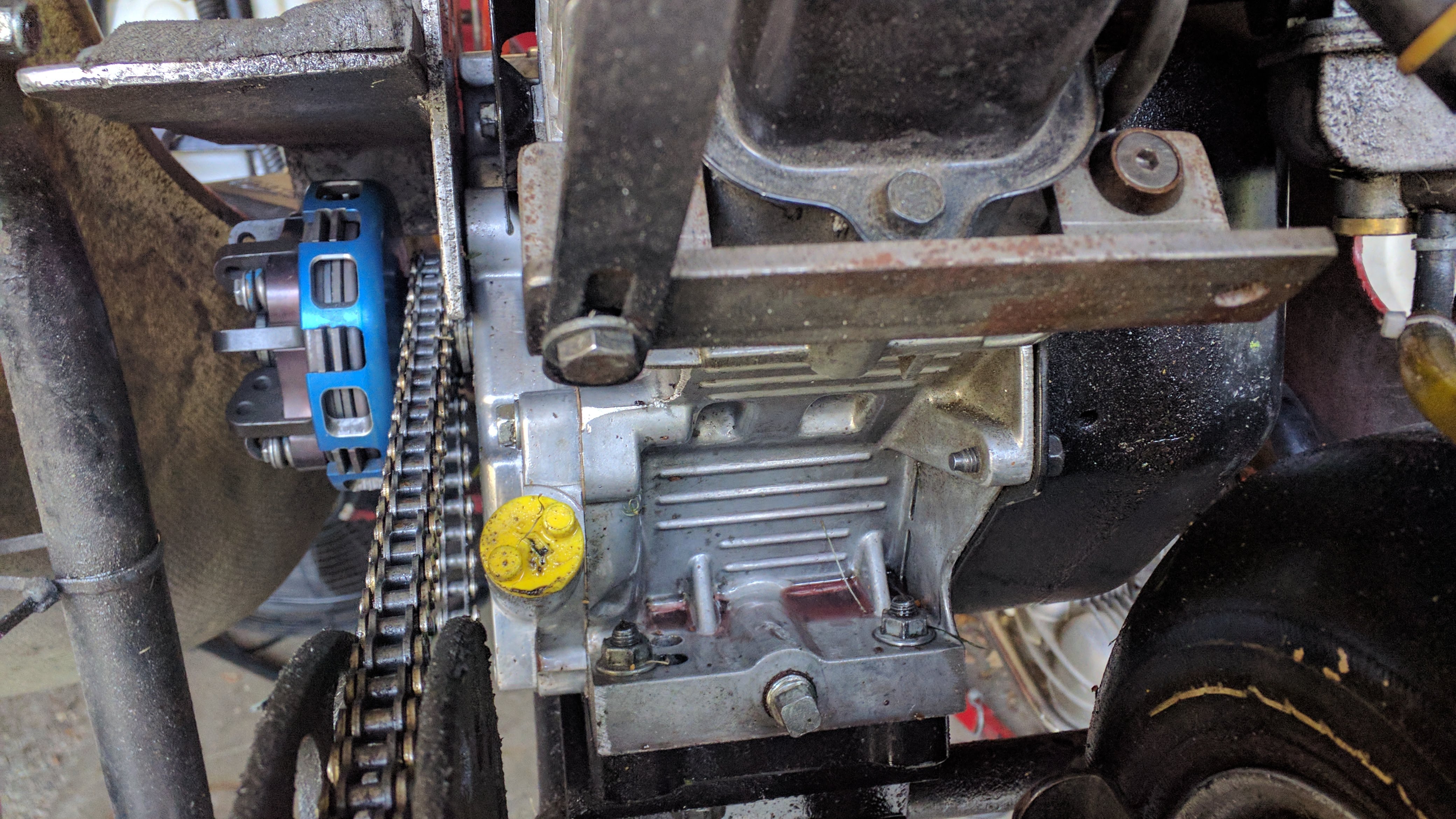 October 13th Jason, myself, and Holtz Racing(Crew Chris and Driver Will) met at Road America kart track for their annual 2 hour endurance race. I had spent the last week in the garage with Jason getting the sprint kart configured for sprint racing with the animal. We had high expectations of getting the over all win with a fast kart and a sound pit stop strategy. Jason took the kart out first for a 10 lap shake down. The gearing was off but the kart looked good. I did see what looked like dirt coming from back of the kart and might have spied a line getting put down on the track as he drove through a corner. He pulled off and we readied to switch drivers. Jason hopped out and started to look at the motor and pointed at the very slick rear tire, there was an oil leak. Chris and I pulled the motor off looked for leaks, drained the oil(looked OK) put it back on, refilled it, changed the gear and put Will in. He put two laps in and came off because the fuel tank cap came off and was spilling methanol on him. As he stepped out the motor was pouring oil and that was that for the day. Further investigation revealed that the side cover gasket let go. We packed up and the Team Holtz left on the way to celebrate a birthday(Happy 14th Birthday Will). Jason and I headed home for him to suit up for some Hockey practice and team pictures.