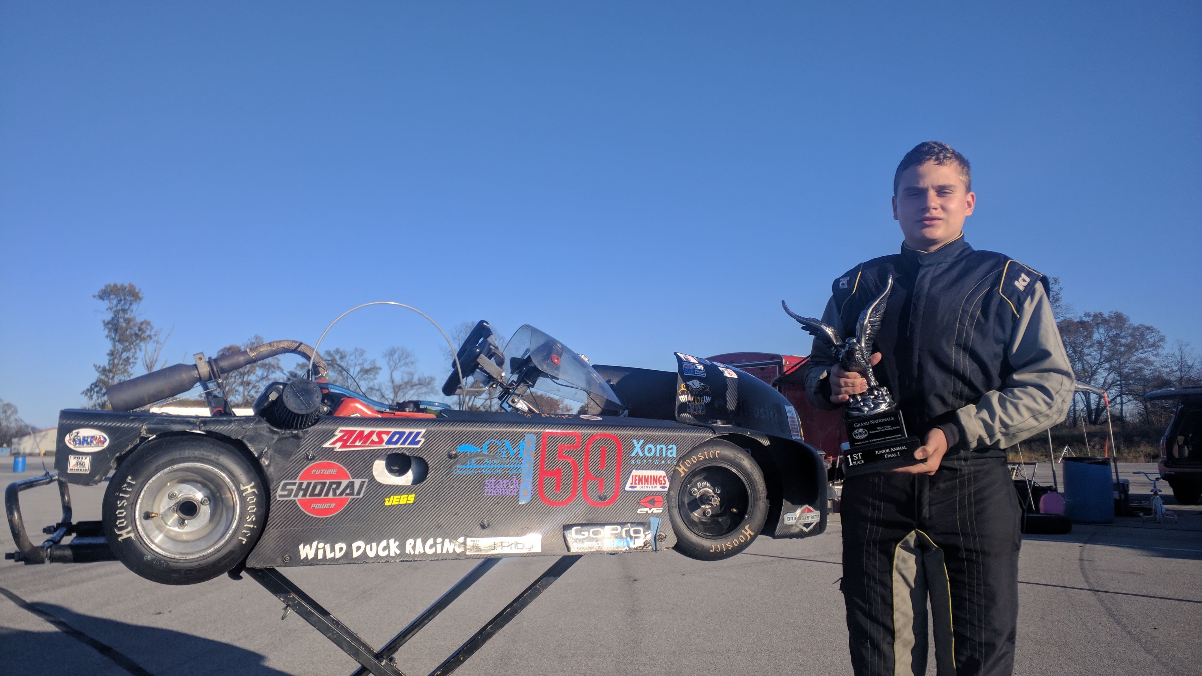 he kart went through a transformation as we made both small and big changes. As the season progressed, Jason made moved in to top 10 and started to approach top 5 by the Grand Nationals, If not for some mechanical issues he was on goal to finish the season as one of the top 10 Junior 4 Cycle sprint drivers. He finished 4th in the CKNA Central Series, 5th in the Northern Series and 24th at Grand Nationals due to failed wheel bolts. Thanks to Viking Kart Products for sponsoring the Junior Class this season. (Image: Post introductions at CKNA Grand Nationals)
