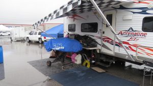Friday morning brought the first of the weather tests for the weekend, it was raining. Thankfully, it let up around noon and we were able to take to the track for a few hours and learn and tune. Jason started around a 1:55 and by the end of the night was down to a low 1:53. The day was not with out challenge, we had to replace the motor due another blown gasket, the good news is the new motor was fresh and strong. We did do some scoping out of the other drivers and Jason seemed faster but race day can be another animal when it comes to speed. After practice we went out to dinner with some other drivers including Mid-Life Karting Crisis host and Wild Duck Racing supporter T.J. Hollingsworth. This was great change of pace for us and had a blast swapping stories.