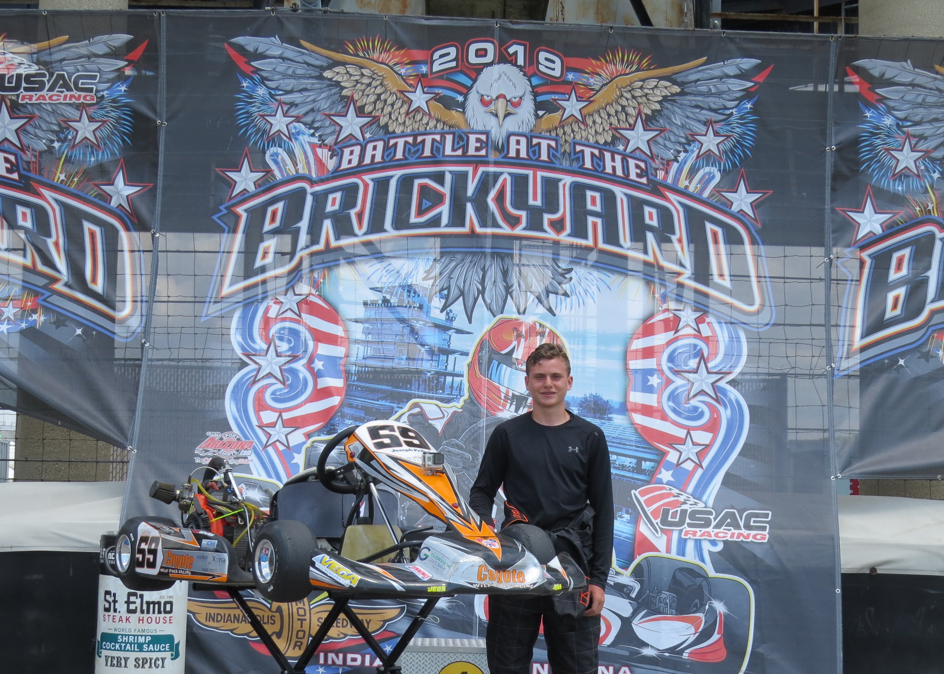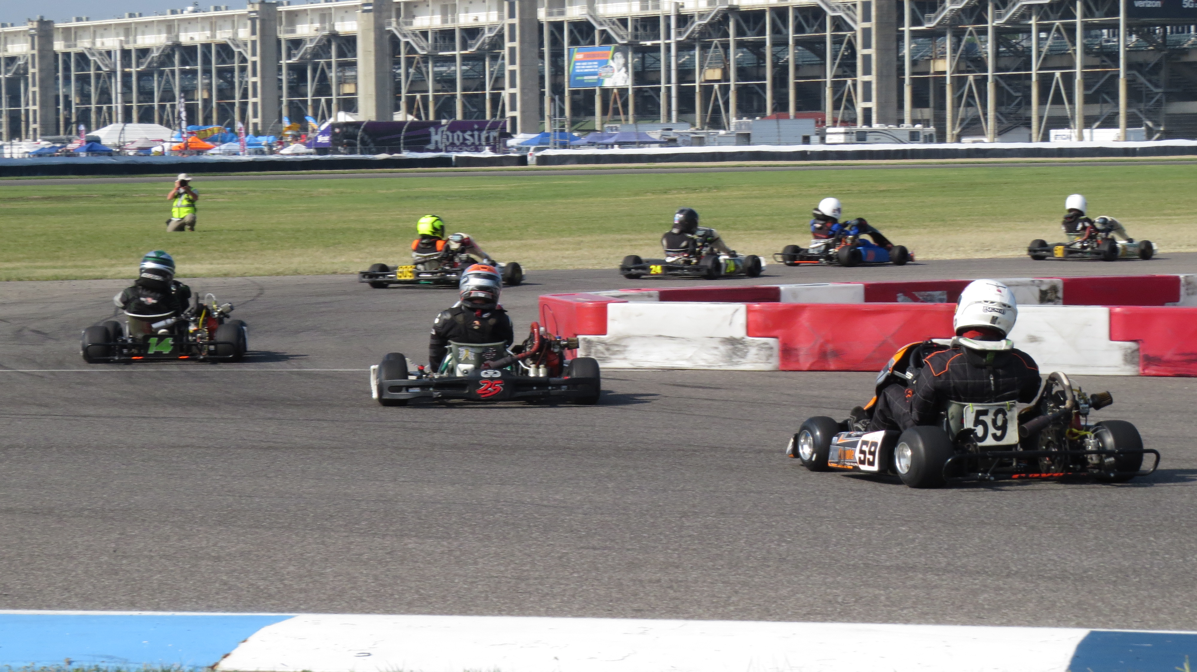 The Battle of the Brickyard was a great experience for the team. This race is a true international race with drivers from the US, Canada, South America, and as far away as Australia. The track could called a street style layout at around 1.2 miles, it has the long smooth lines of a road race and the tight technical corners. Jason has the unique experience as a road and sprint racer to quickly understand the speed of the track. The challenge will be getting the kart into a state where he can drive it fast and stay in the draft.