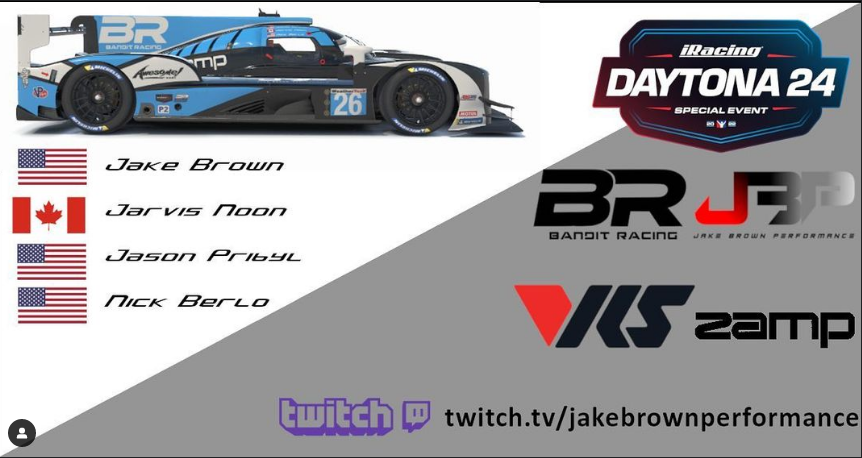 Jason and the Racing Bandit team competed in the iRacing 24 hrs of Daytona e-series on January 22nd. They qualified 16th and moved into 9th after a few hours. In the 8th hour of the race they suffered a 15 minute repair cycle after a GT car ran out of fuel and darted in front of them. They dropped to 16th but continued to press forward finishing 7th and 16 laps down.
