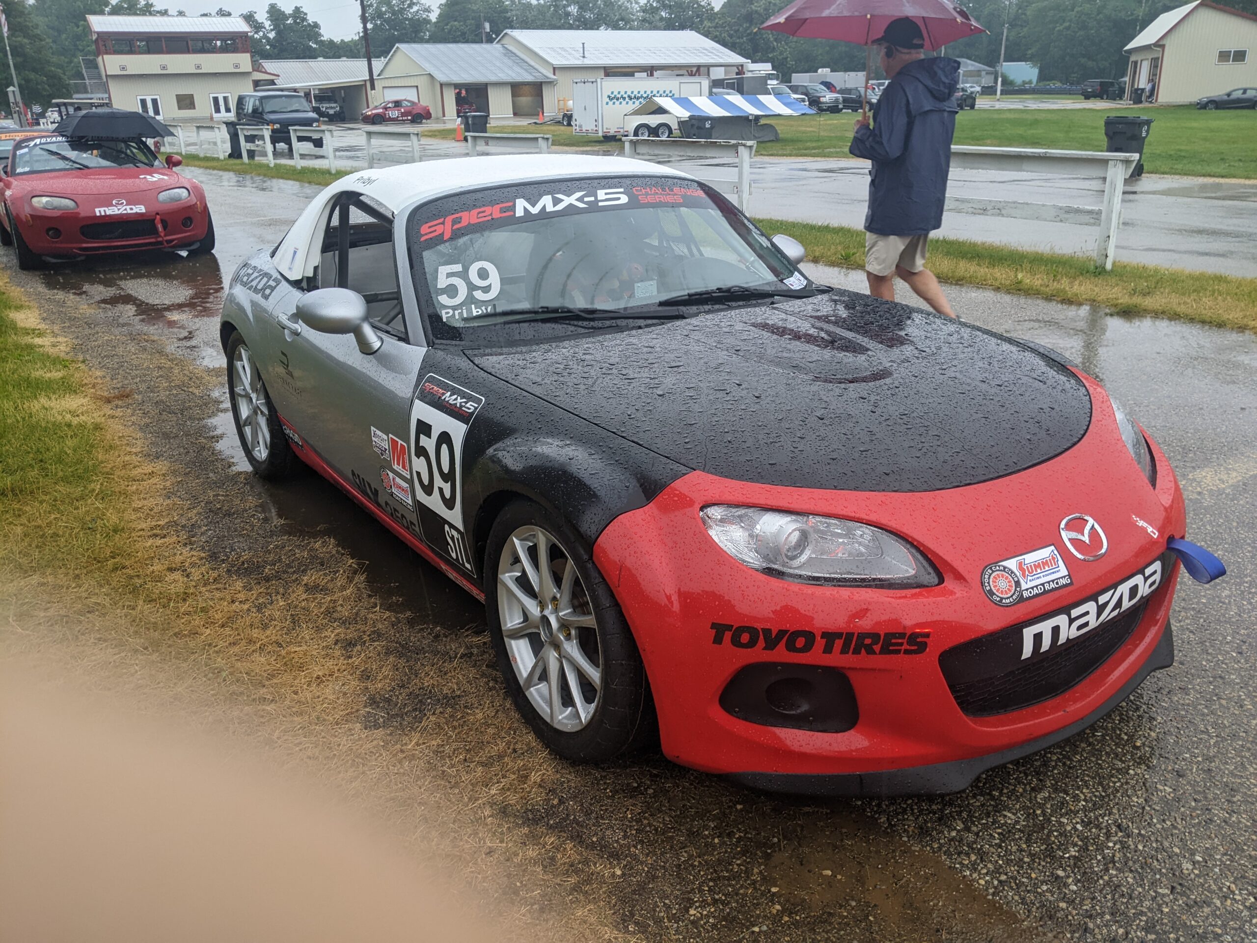 His performance on Saturday was amazing. It did start on rain tires and some humble pie. In group 2 qualifying in 5th having been beat out by significantly less powerful but more manageable B-spec cars. B-Spec cars are based on small front wheel drive cars and handle well in the rain while Jason was still getting his feet wet.